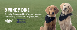 Presented by Calypso Kennels, the inaugural 9 Wine and Dine on Aug. 20, 2026, at Fredericksburg Country Club begins with a 9-hole ProAm followed by a curated evening experience, including a mission presentation, Warrior testimonial, premium dining, an open bar, and of course, puppies! Sponsorships begin at $2,500 and support Leashes of Valor’s mission providing service dogs at no cost to wounded and disabled veterans. View our sponsorship opportunities here. Tickets to the evening portion of the event only are $75.